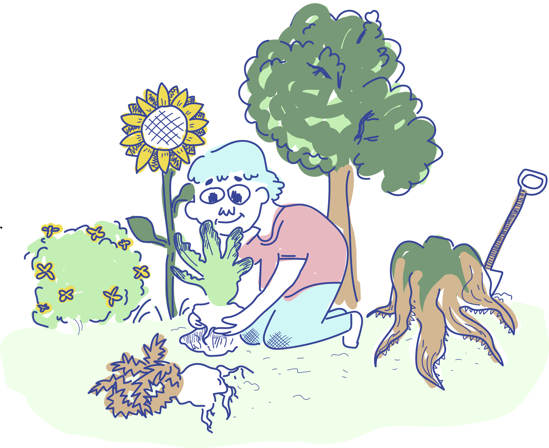 The color palette I used for this zine (except for the garden illustration) consists of different shades of blue and a pinkish-red. I made this choice because the topic compares genders side by side and draws on long-standing expectations of how men and women should behave. Plus, Viagra is known as “the blue pill,” while the medication marketed for women is called “the pink pill.” It felt fitting to create a cohesive look using these two colors.